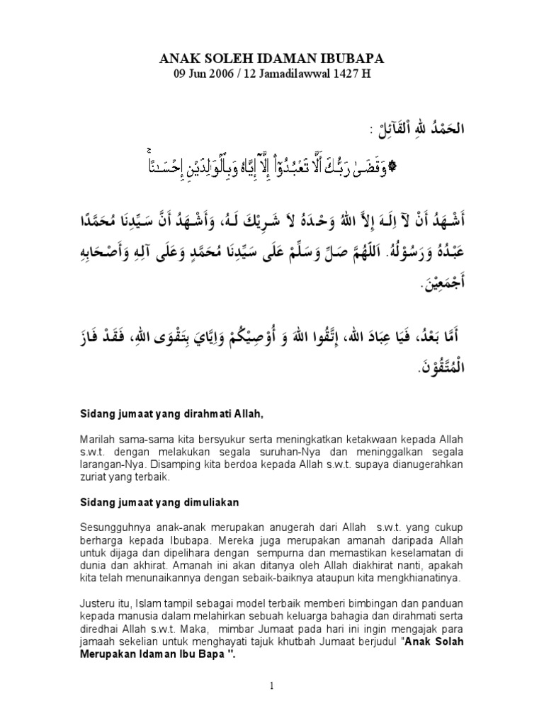 Anak Soleh Dambaan Ibu Bapa - Anak Soleh Idaman Ibubapa Pdf Document - Kecantikan dan keindahan kain itu bergantung kepada ibubapa itu sendiri untuk mencorakkannya.